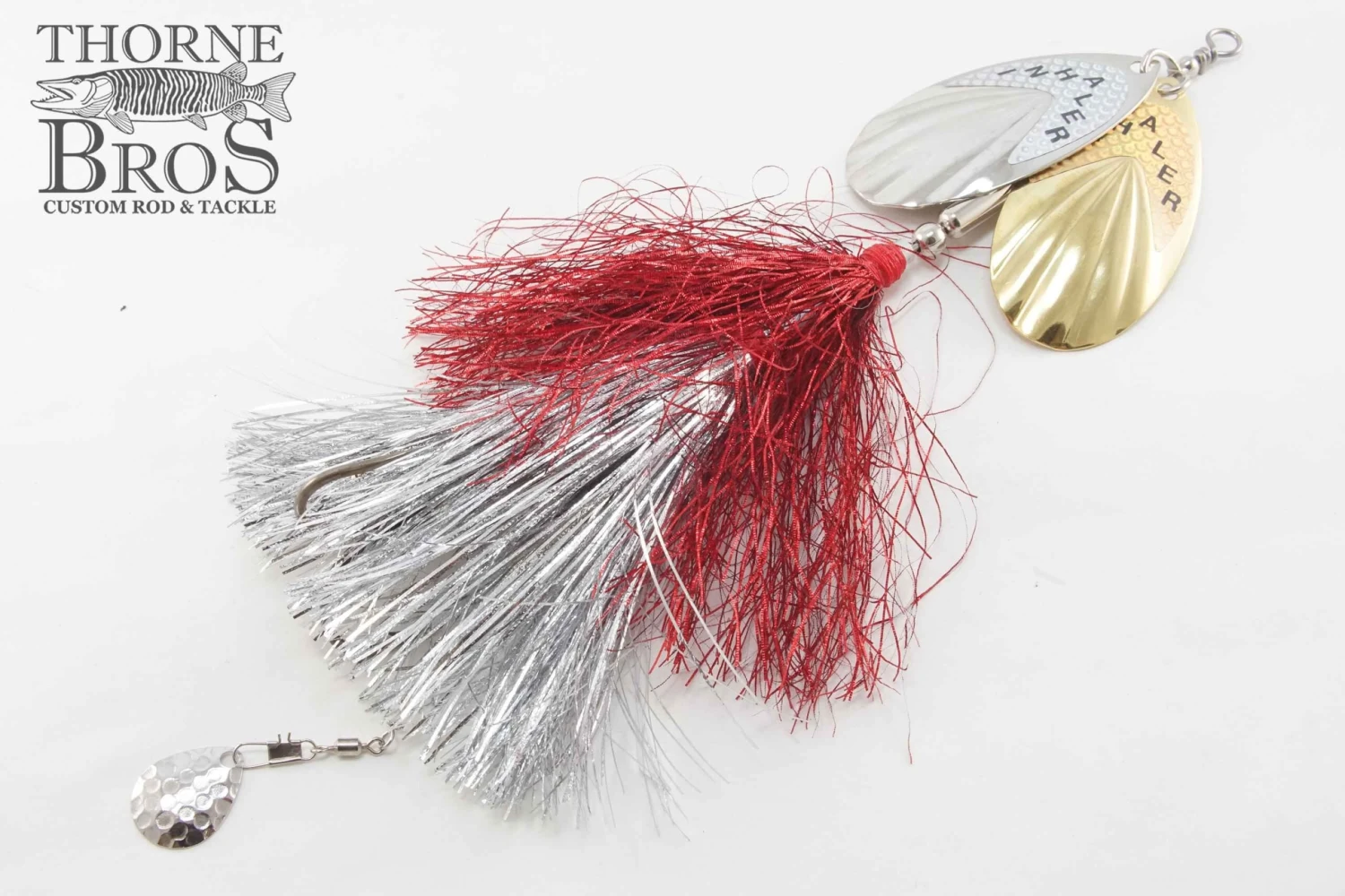 The Inhaler Twin Blade Firefly has extra vibration you need when targeting big fish. This 9″ lure combines a perfect tinsel tail with two #8 fluted indiana blades for the ideal thumping lure that will not wear you out. Comes with Inhaler’s famous chaser blade.