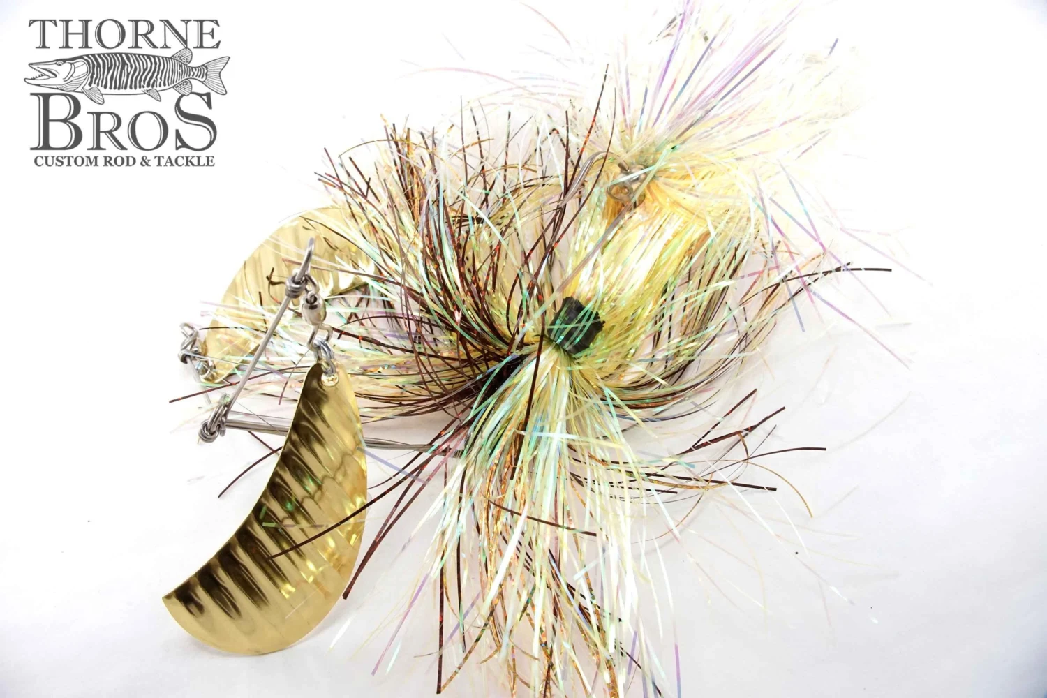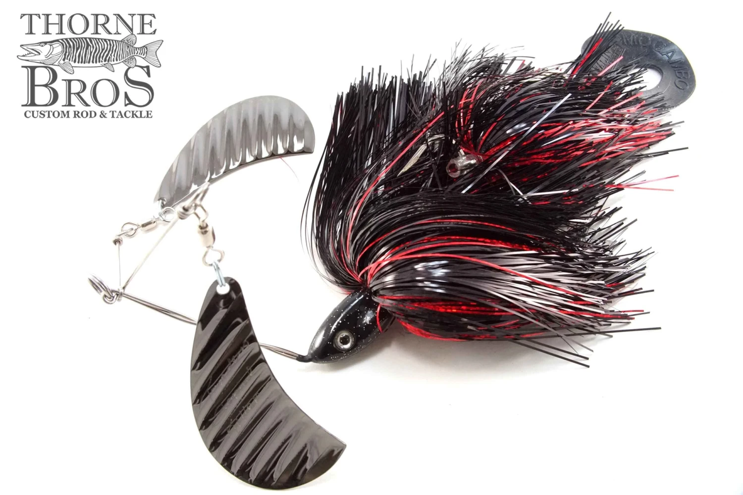It’s almost like having 2 spinnerbaits in 1! The twin arms use one hatchet blade on each. Flashabou skirts over twin single hooks and Kalin’s grub tail. Maximum vibration. 2.5 oz head.